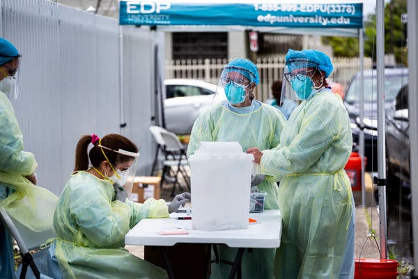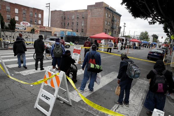People lined up for coronavirus tests in downtown Los Angeles.Credit...Marcio Jose Sanchez/Associated Press
