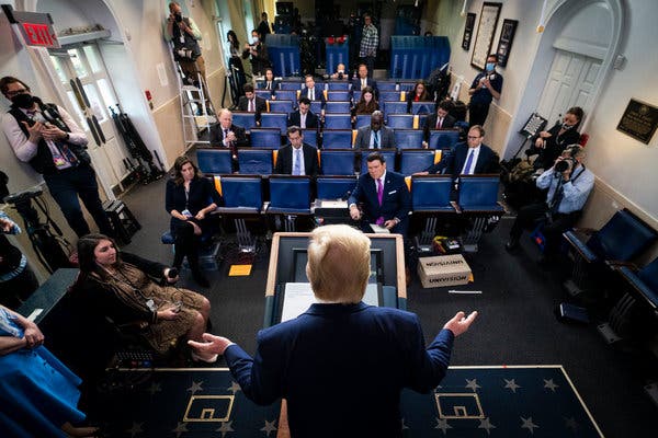 President Trump during a White House briefing last week.Credit...Doug Mills/The New York Times
