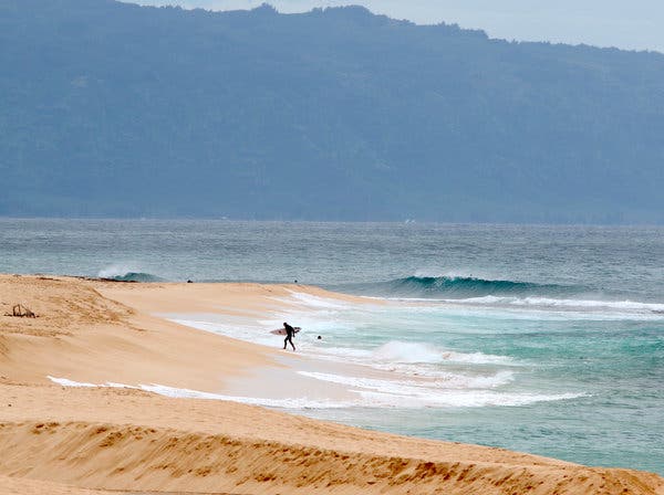 In Hawaii, lounging or loitering on the beach is prohibited, but access to the ocean has not been banned.Credit...Caleb Jones/Associated Press