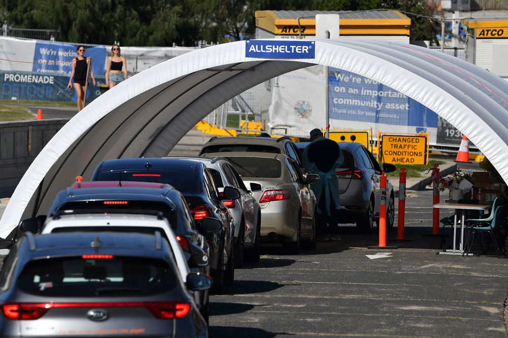 Cars queue up for free drive-through coronavirus tests at Bondi Beach in Sydney on April 22. Saeed Khan/AFP/Getty Images