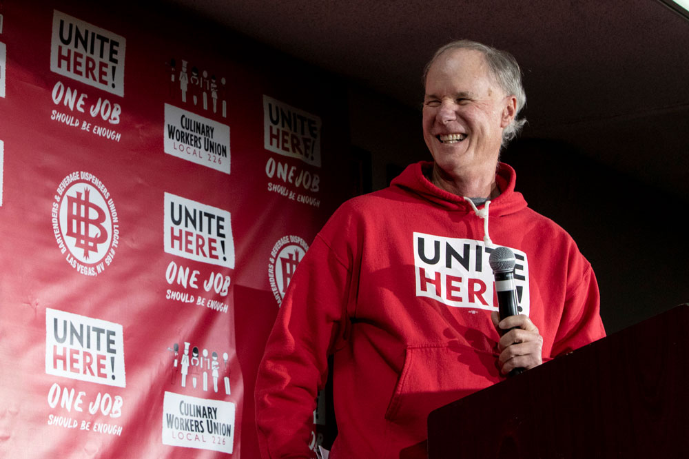 D. Taylor, president of UNITE HERE, during a town hall meeting with Democratic presidential candidate Sen. Bernie Sanders at the Culinary Workers Union Local 226 on December 10, 2019, in Las Vegas. Krystal Ramirez/Las Vegas Sun via AP
