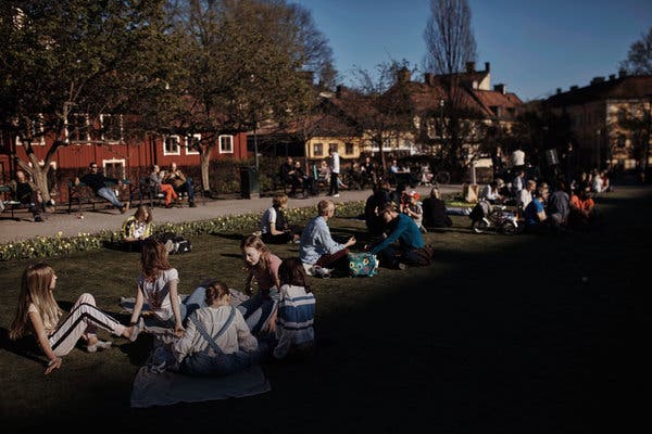 But on one warm spring day in Stockholm last week, there was little evidence that people were observing the protocols. Young Swedes thronged bars, restaurants and parks, drinking in the sun.