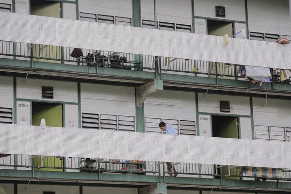 The Cochrane Lodge II, a dormitory for foreign workers in Singapore, was designated as an isolation area.Credit...Wallace Woon/EPA, via Shutterstock
