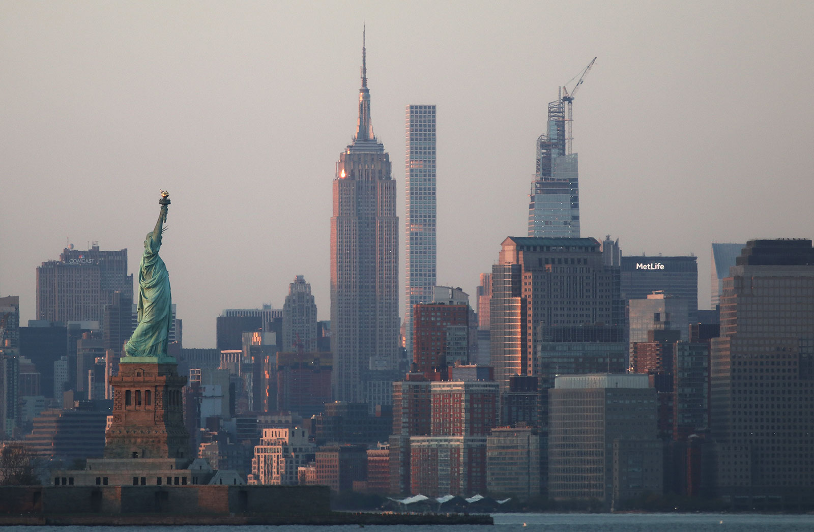 The sun sets on the Statue of Liberty and the Empire State Building in New York City on May 3. Gary Hershorn/Getty Images