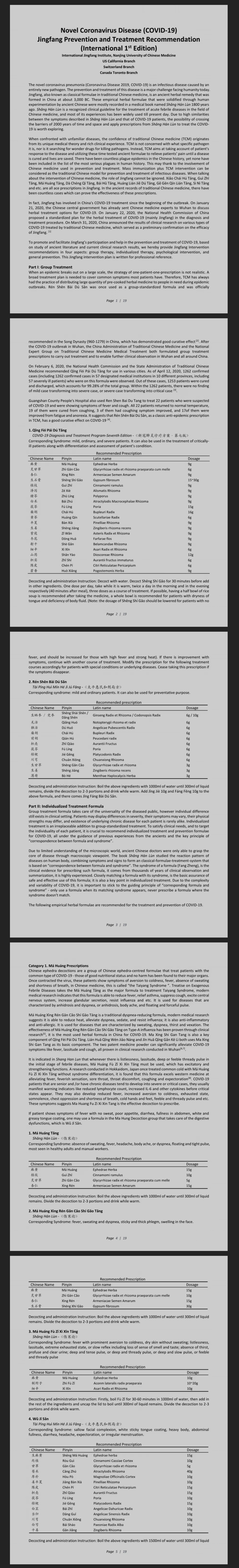COVID-19 Jingfang Prevention and Treatment Recommendation