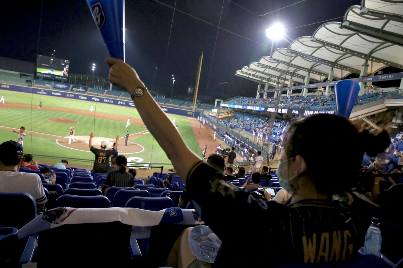 Fans cheer during the game between Fubon Guardians and Uni-President Lions at Xinzhuang Baseball Stadium in New Taipei City on May 8. Hsu Tsun-Hsu/AFP via Getty Images