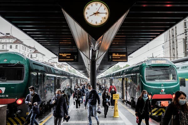 Commuters in Milan on Monday.Credit...Alessandro Grassani for The New York Times