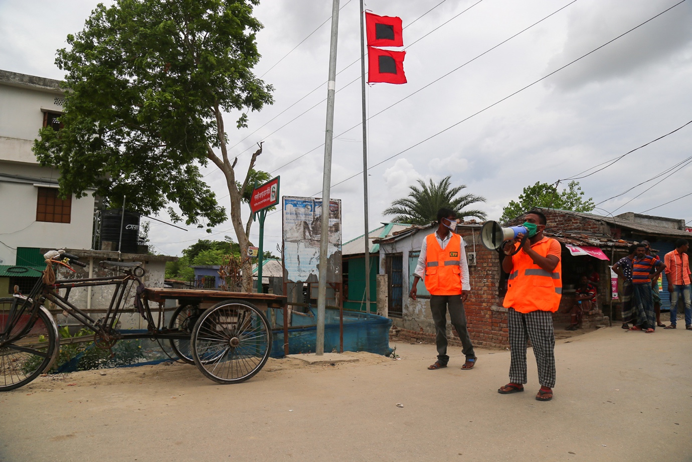 A volunteer uses a megaphone to urge residents to evacuate to shelters ahead of the expected landfall of Super Cyclone Amphan in Khulna, Bangladesh on May 19. Kazi Shanto/AFP/Getty Images
