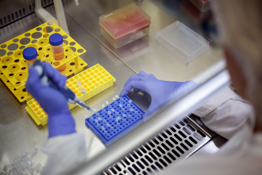 A researcher works on a coronavirus testing program in Rio de Janeiro on April 1. Andre Coelho/Getty Images