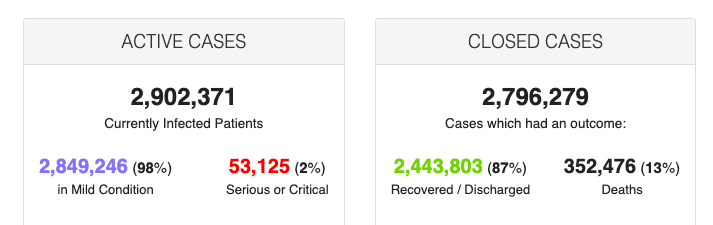 The global death toll from the coronavirus pandemic has now reached 350,531, according to a tally by John Hopkins University.