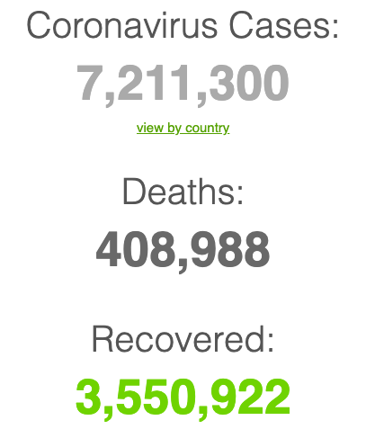 Global infections have risen to 7,119,454, with deaths at 406,540, according to Johns Hopkins University data. The US still has the most infections (1,961,185) and deaths (111,007). The UK has the second highest death toll globally (40,680).