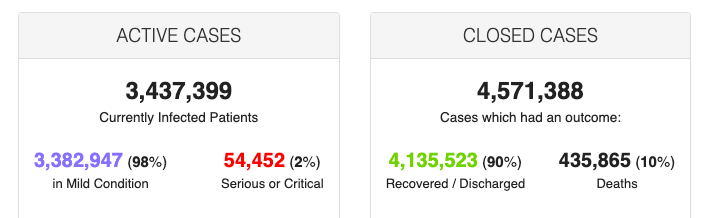 known coronavirus deaths worldwide since the start of the pandemic. The number of confirmed cases stands at 7,912,981.