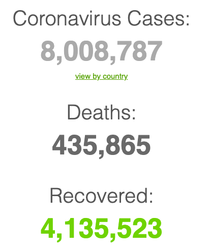 Cases worldwide pass 7.9 million. According to the Johns Hopkins University tracker, which relies on official government figures, there have been 433,394