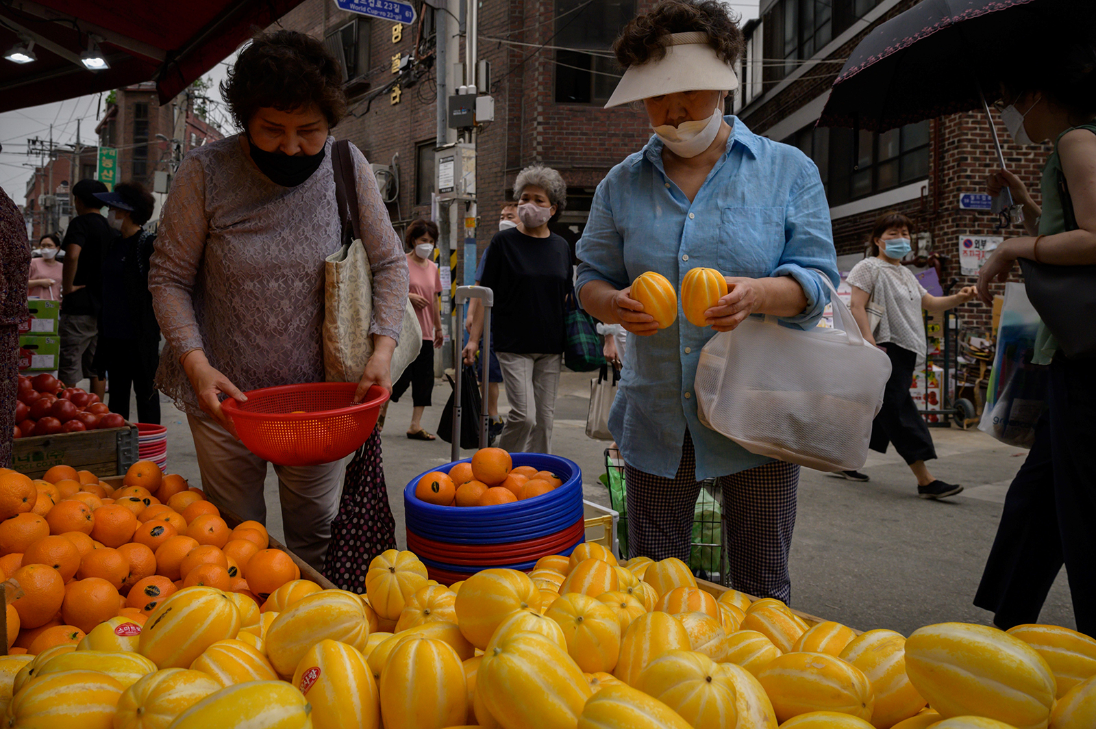 Shoppers walk through a market in Seoul on June 10. Ed Jones/AFP/Getty Images