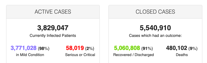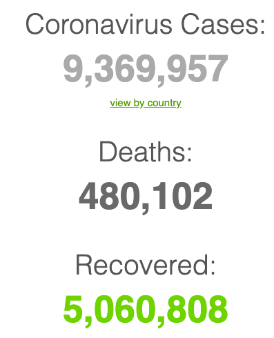 · Deaths worldwide passed 475,000, according to Johns Hopkins University figures, with the known toll currently at 477,584, and known infections standing at 9,263,466.