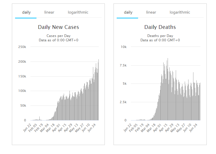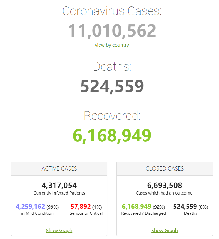 · Global cases are nearing 11 million. There are 10,842,615 known infections worldwide, and 520,785 deaths.