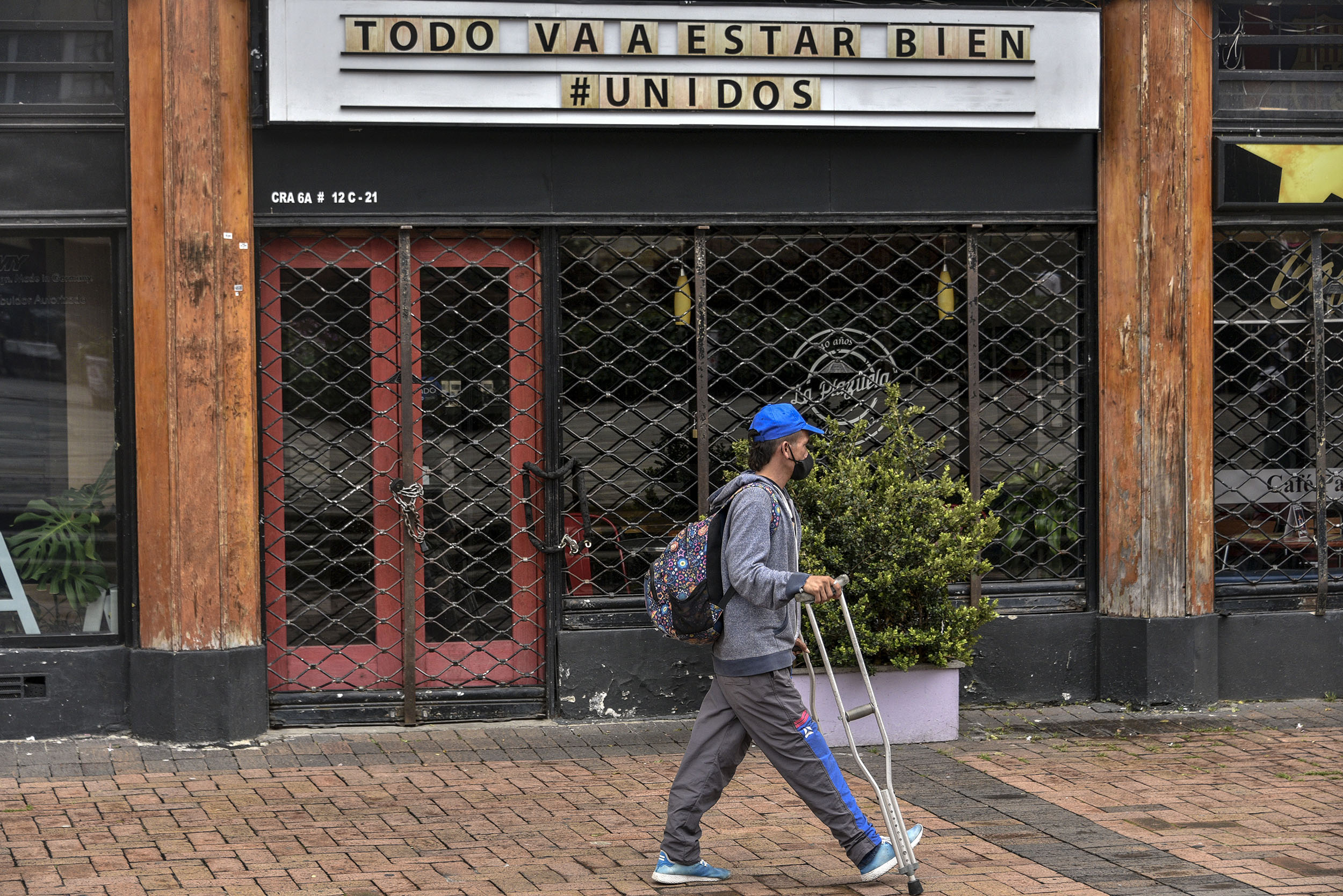 A passer-by walks past a closed restaurant with the sign that reads 'everything will be alright' on July 02, in Bogota, Colombia. Guillermo Legaria/Getty Images