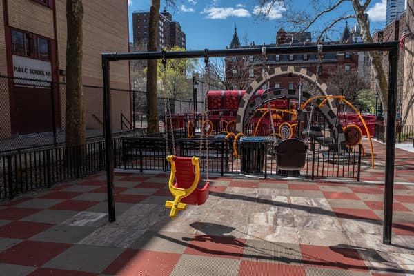 An empty playground outside Public School 145 in Manhattan after the city closed schools in April.Credit...Juan Arredondo for The New York Times