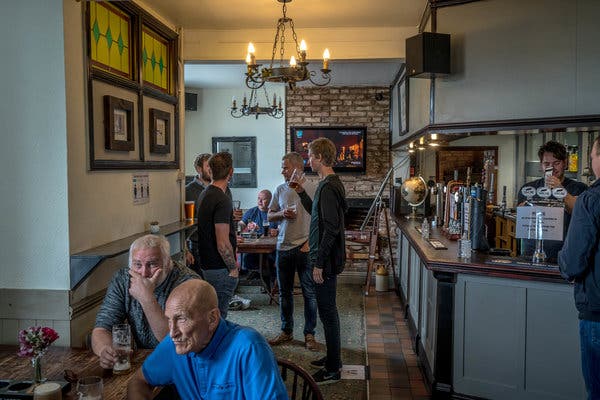 The Cross Keys, which is on the English side of Llanymynech, served its first customers since March on Saturday.Credit...Andrew Testa for The New York Times