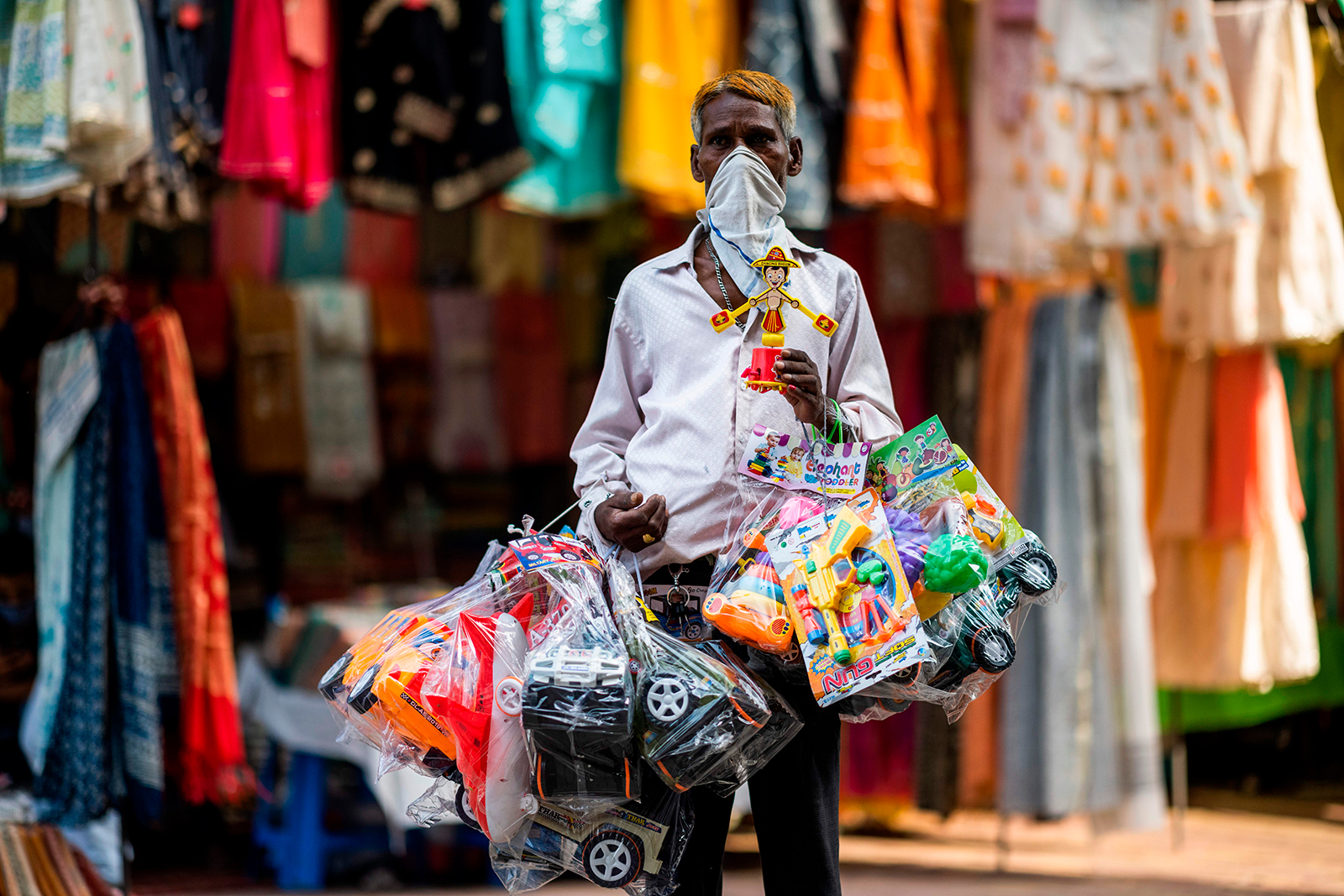 A vendor selling toys waits for customers in a market area in New Delhi on July 5. Jewel Samad/AFP/Getty Images