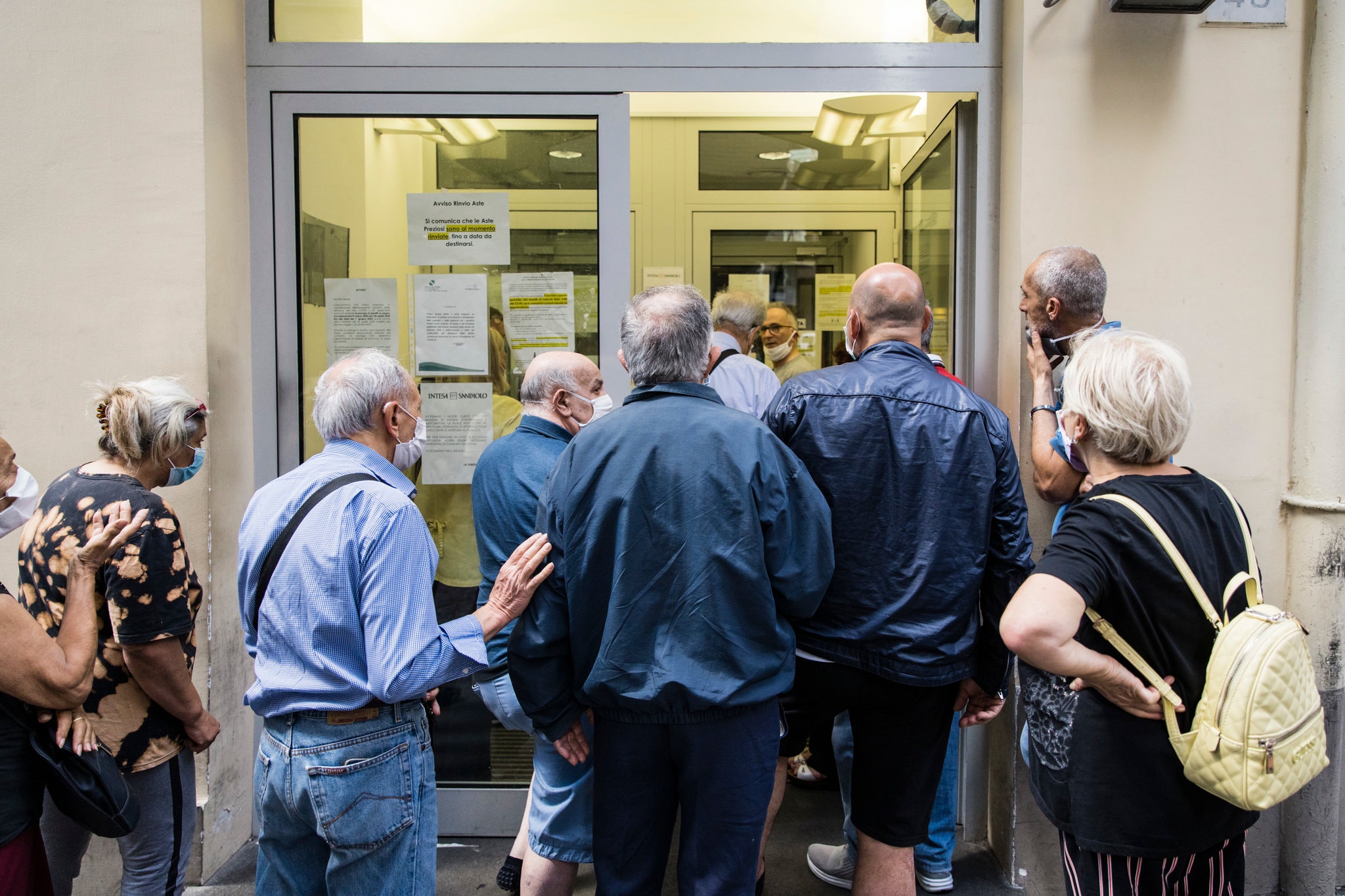 Customers waiting to enter the pawn branch of the Bank of Naples in Italy to pay interest in June.Credit...Gianni Cipriano for The New York Times