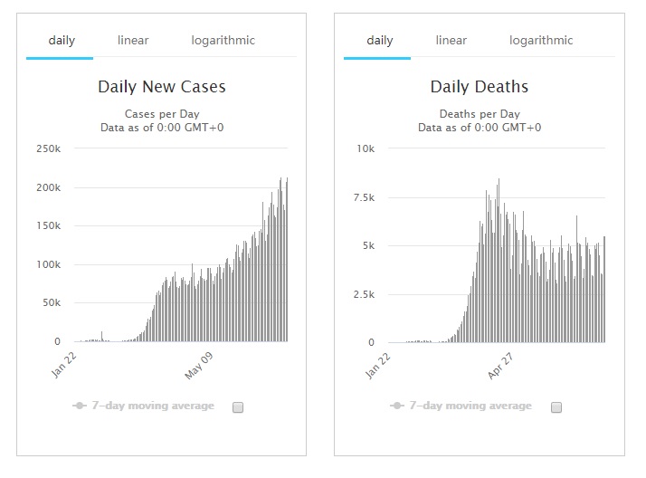 · Argentina posted a daily record of cases. Argentina has posted a daily record of 3,604 confirmed cases of Covid-19.The sharp rise, the first time daily cases have surpassed 3,000, took the total number to 87,030, fivefold the number at the start of June, though still well below case loads in Brazil, Chile and Peru.Argentina’s center-left government imposed a strict lockdown in mid-March, which has been loosened in most of the country but was extended and reinforced last month in and around Buenos Aires due to a spike in cases.The country’s death toll from the pandemic stands at 1,694.