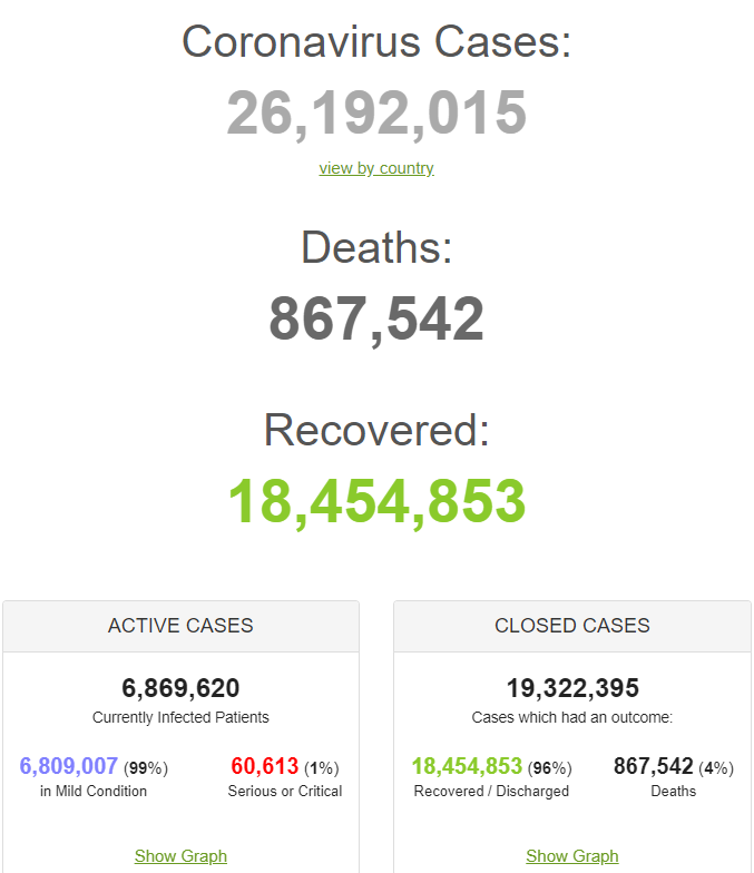 Retrieved from: https://www.worldometers.info/coronavirus/