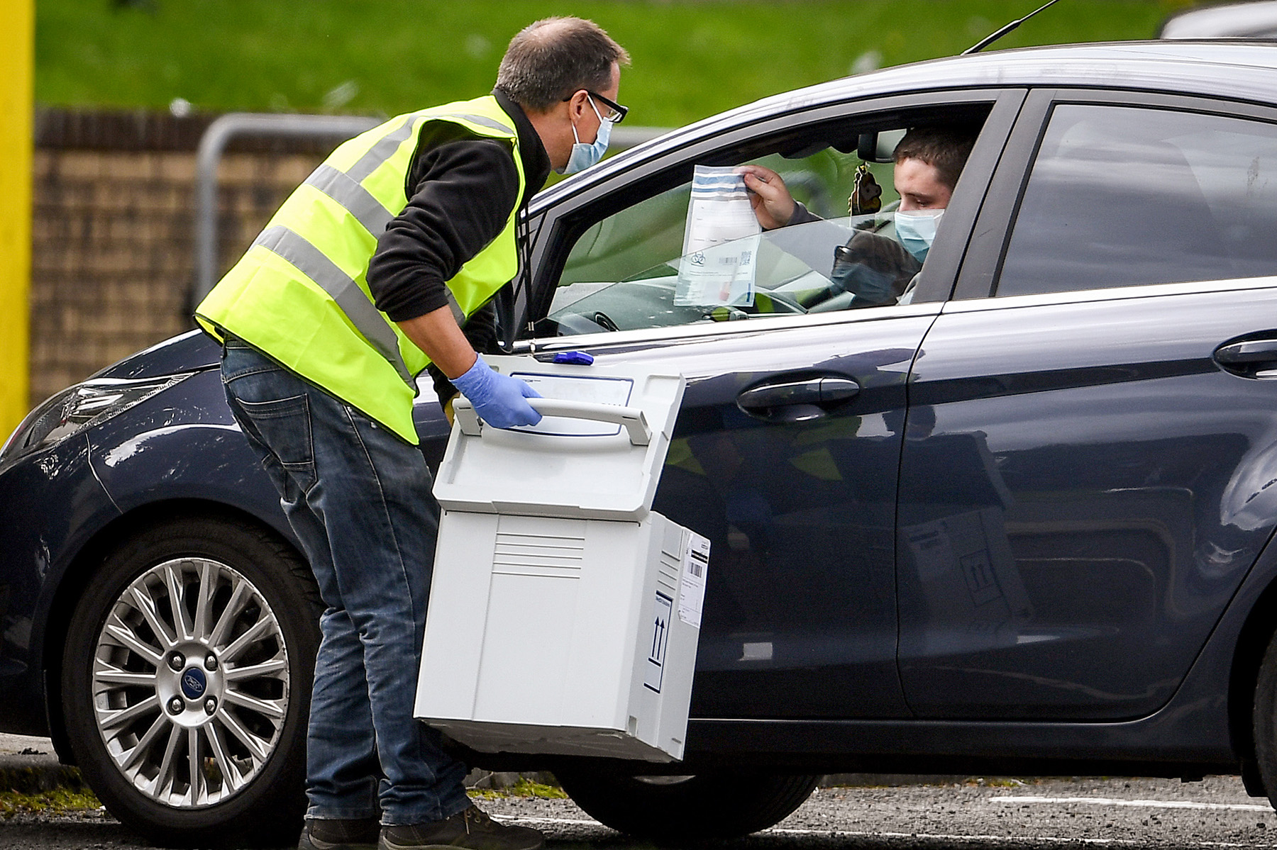 Members of the public get tested for Covid-19 at a coronavirus mobile testing center in West Dunbartonshire on September 3, in Dumbarton, Scotland. Jeff J Mitchell/Getty Images