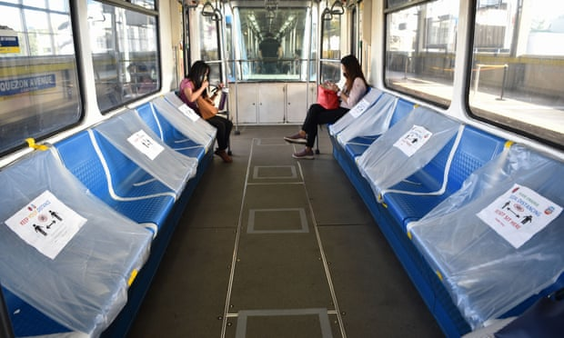 A train in Manila during the Philippines’ lockdown, which was one of the strictest in the world. Photograph: Ted Aljibe/AFP/Getty Images