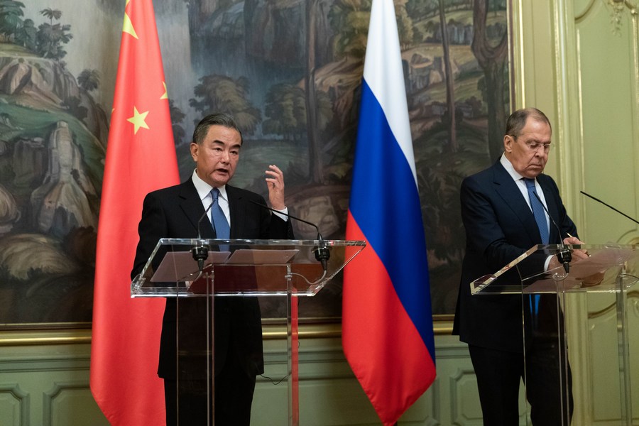 Chinese State Councilor and Foreign Minister Wang Yi (L) and Russian Foreign Minister Sergei Lavrov meet the press after their talks in Moscow, Russia, on Sept. 11, 2020. (Xinhua/Bai Xueqi)
