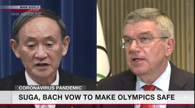 Prime Minister Suga Yoshihide and IOC President Thomas Bach spoke by phone for about 15 minutes on Wednesday. The talks were their first since Suga took office as prime minister last week.
