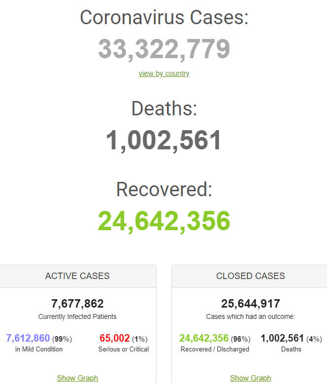 Retrieved from: https://www.worldometers.info/coronavirus/