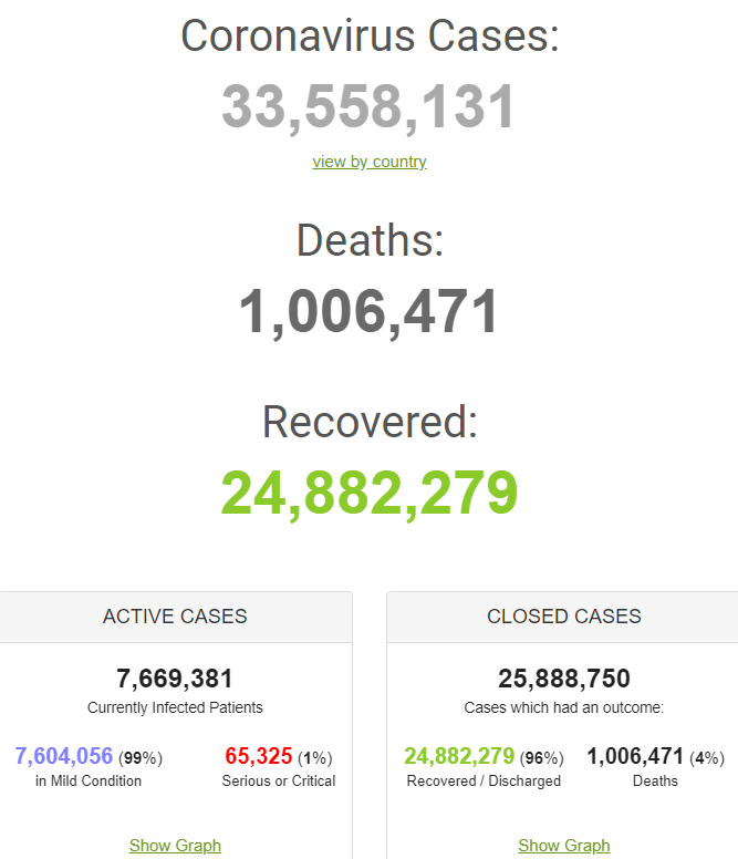 Retrieved from: https://www.worldometers.info/coronavirus/