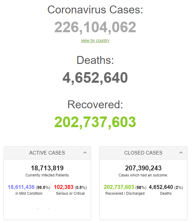 Retrieved from: https://www.worldometers.info/coronavirus/