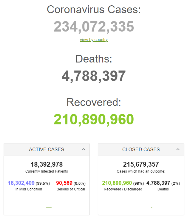 Retrieved from: https://www.worldometers.info/coronavirus/