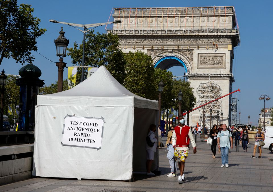 A tent for rapid coronavirus disease (COVID-19) test is seen on the Champs-Elysees near the Arc de Triomphe in Paris, September 3, 2021. REUTERS/Eric Gaillard