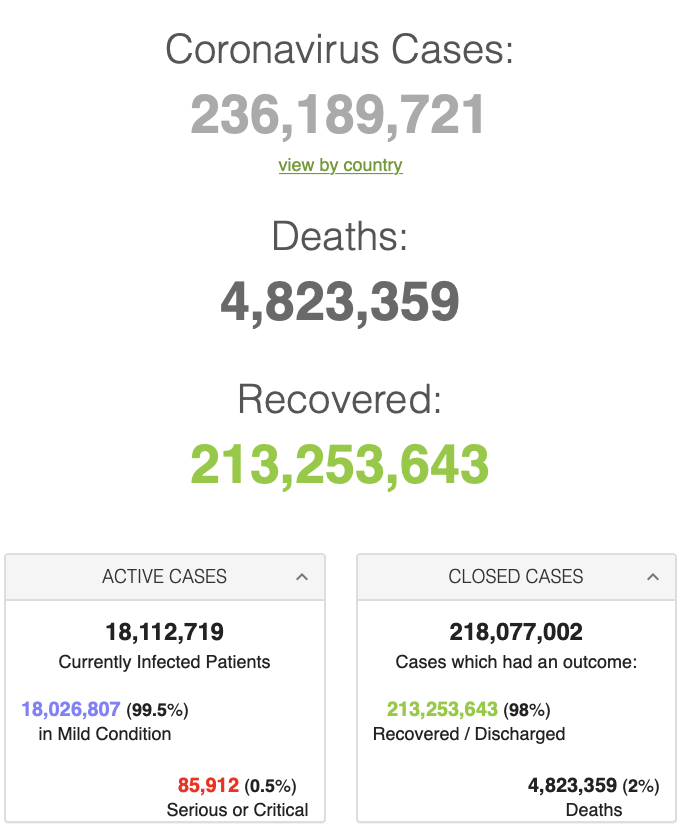 Retrieved from: https://www.worldometers.info/coronavirus/