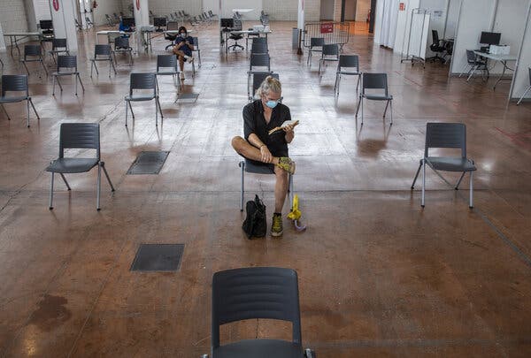 A vaccination site in Spain, where the health regulator approved the use of third Covid-19 vaccination shots for immunocompromised people in September.Credit...Zowy Voeten/Getty Images