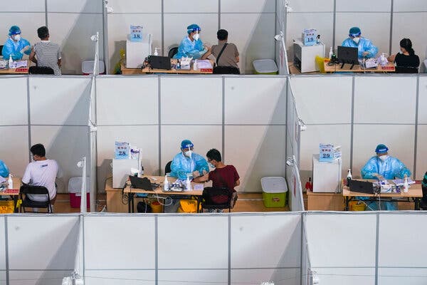 People getting Covid-19 vaccinations in Nanjing, in China’s Jiangsu Province, in August.Credit...Li Bo/Xinhua, via Associated Press