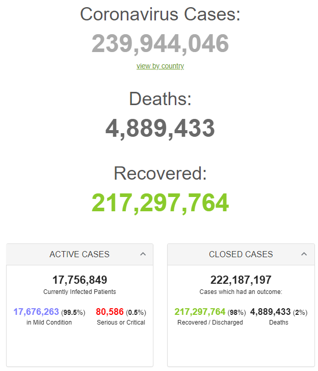 Retrieved from: https://www.worldometers.info/coronavirus/
