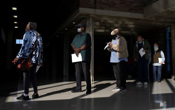 People in line for Pfizer-BioNTech Covid-19 booster vaccinations in Southfield, Mich., last month.Credit...Emily Elconin/Reuters