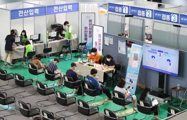 A vaccination center in Seoul in August. On Monday, South Korea opened its vaccination program to 16- and 17-year-olds and pregnant women.Credit...Yonhap/EPA, via Shutterstock