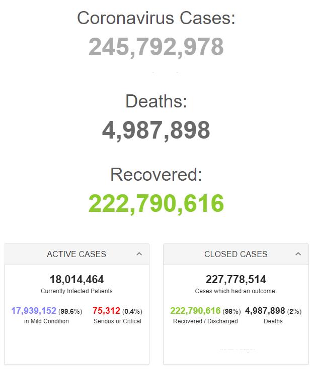 Retrieved from: https://www.worldometers.info/coronavirus/
