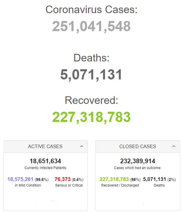 Retrieved from: https://www.worldometers.info/coronavirus/