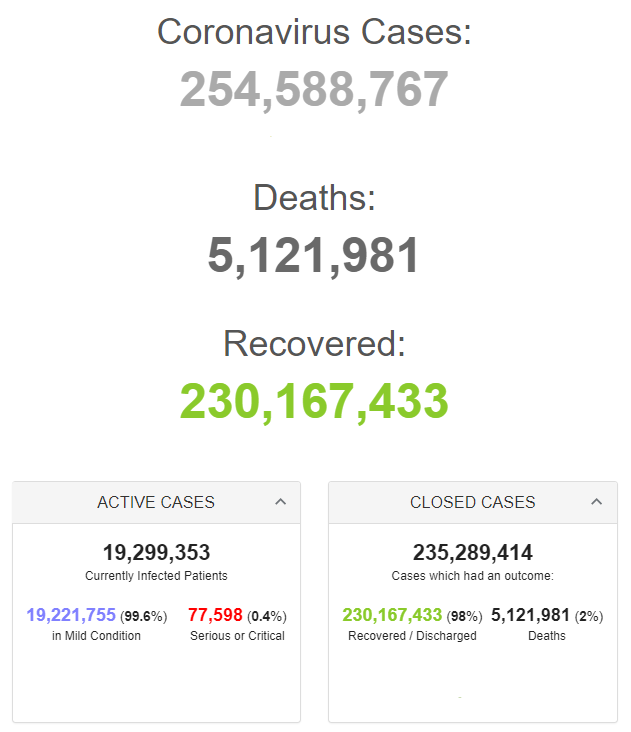 Retrieved from: https://www.worldometers.info/coronavirus/