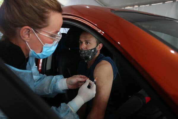 Administering a coronavirus vaccination at a hub in Sydney, Australia, in October.Credit...Lisa Maree Williams/Getty Images