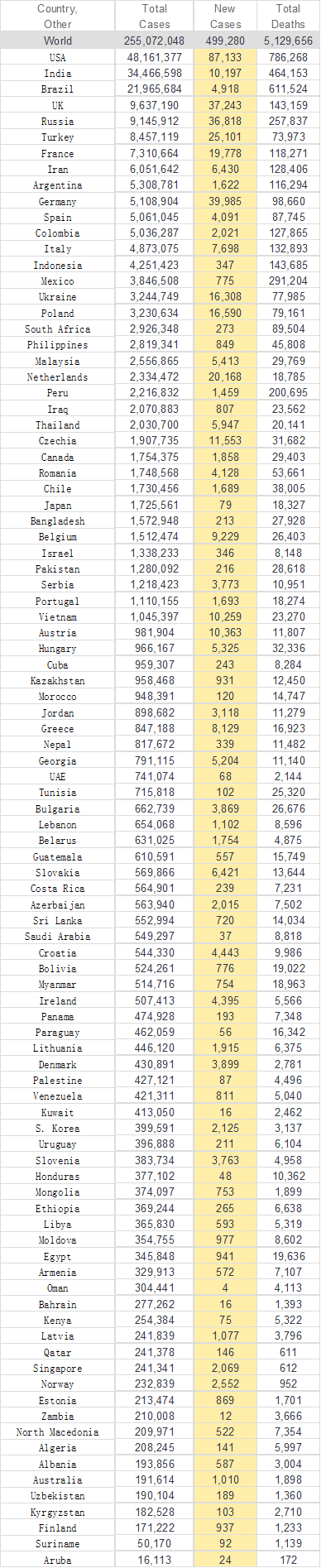 Retrieved from: https://www.worldometers.info/coronavirus/