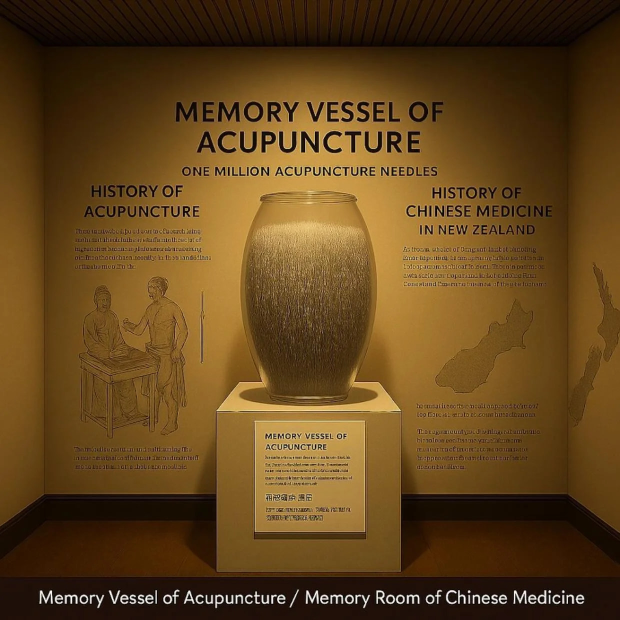 All needles will be sterilised and safely sealed in a custom-made vessel, accompanied by a wall display on the history of acupuncture in New Zealand.