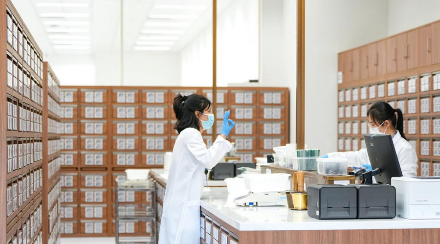 Chinese medicine practitioners in the pharmacy at the Chinese Medicine Hospital of Hong Kong. Photo: Sam Tsang