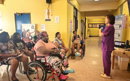 In addition to clinical care, the team delivered health education sessions focused on chronic disease prevention. Cui Hong gave two English-language lectures titled “Know Your Sugar” and “Manage Healthy Weight,” addressing diabetes prevention and healthy lifestyle management.